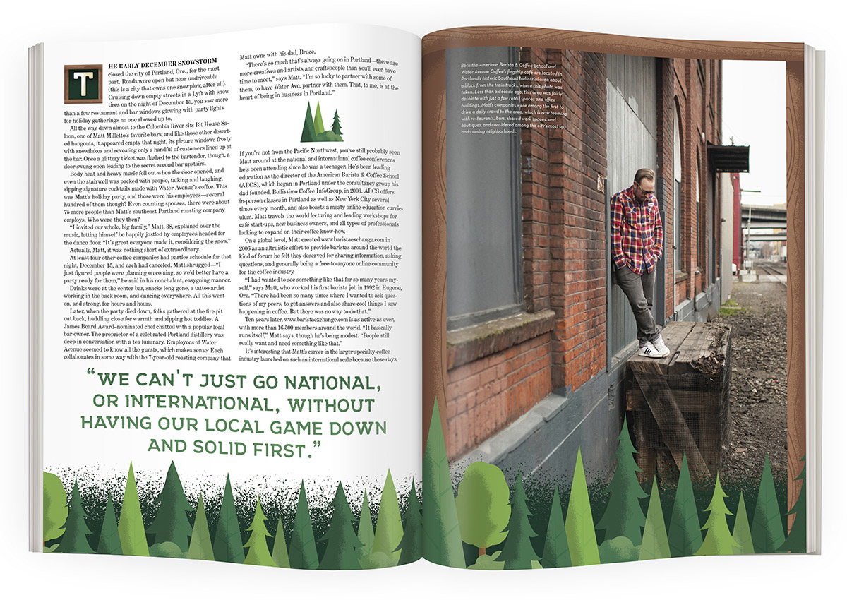 Illustration & Art Direction for a feature in Barista Magazine. Matt Milletto is a well known barista in Portland, OR.